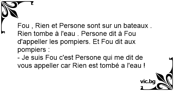 Rien tombe à l'eau . Persone dit à Fou d'appeller les pompiers. Et Fou dit aux pompiers :