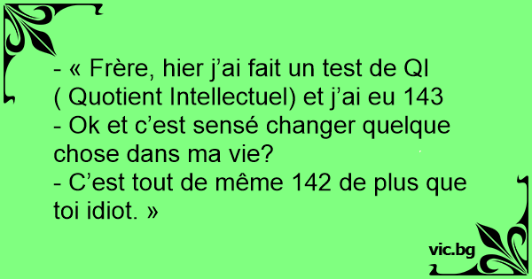 - « Frère, hier j’ai fait un test de QI ( Quotient Intellectuel) et j’ai eu 143