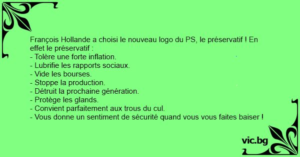 François Hollande a choisi le nouveau logo du PS, le préservatif ! En effet le préservatif :