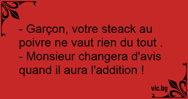 - Garçon, votre steack au poivre ne vaut rien du tout .