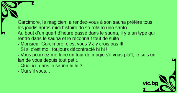 Garcimore, le magicien, a rendez-vous à son sauna préféré tous les jeudis après-midi histoire de se refaire une santé.