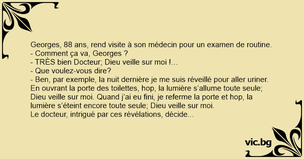 - TRÈS bien Docteur; Dieu veille sur moi !…
