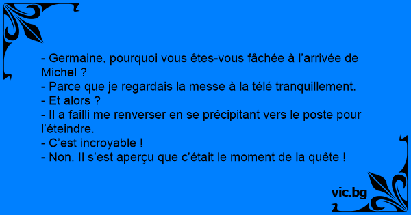 - Germaine, pourquoi vous êtes-vous fâchée à l’arrivée de Michel ?