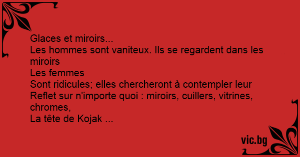 Les hommes sont vaniteux. Ils se regardent dans les miroirs