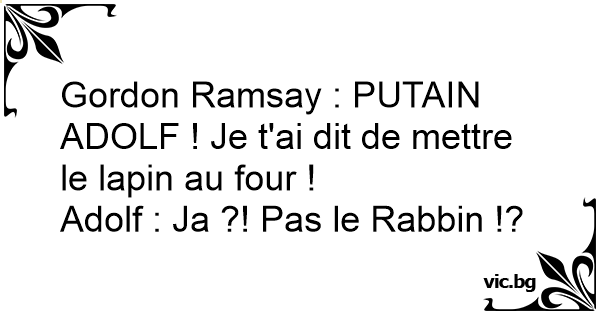 Gordon Ramsay : РUТАIN ADOLF ! Je t'ai dit de mettre le lapin au four !