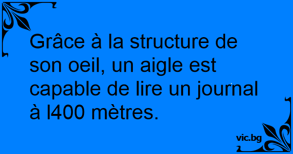 Grâce à la structure de son oeil, un aigle est capable de lire un journal à l400 mètres.