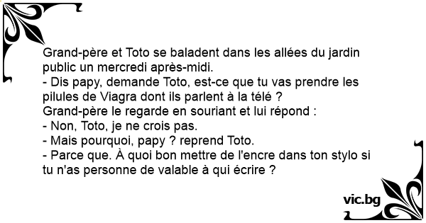 - Dis papy, demande Toto, est-ce que tu vas prendre les pilules de Viаgrа dont ils parlent à la télé ?