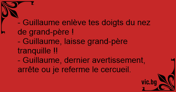 - Guillaume, dernier avertissement, arrête ou je referme le cercueil.
