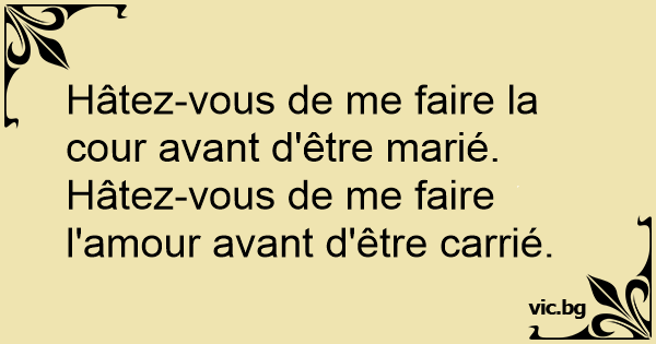 Hâtez-vous de me faire l'amour avant d'être carrié.