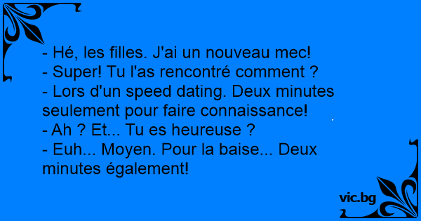 - Lors d'un speed dating. Deux minutes seulement pour faire connaissance!