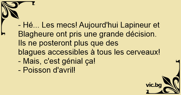 - Hé... Les mecs! Aujourd'hui Lapineur et Blagheure ont pris une grande décision. Ils ne posteront plus que des blagues accessibles à tous les cerveaux!