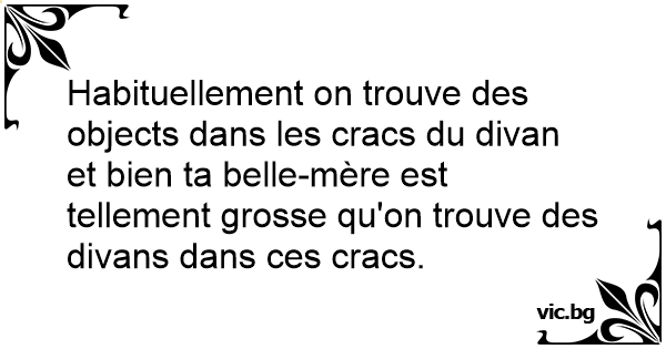 Habituellement on trouve des objects dans les cracs du divan et bien ta belle-mère est tellement grosse qu'on trouve des divans dans ces cracs.