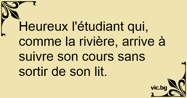 Heureux l'étudiant qui, comme la rivière, arrive à suivre son cours sans sortir de son lit.
