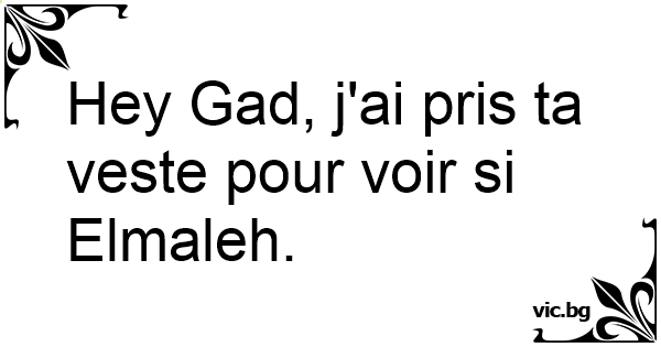 Hey Gad, j'ai pris ta veste pour voir si Elmaleh.