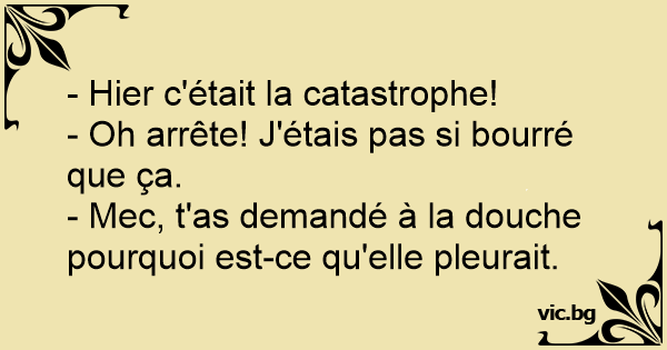 - Mec, t'as demandé à la dоuсhе pourquoi est-ce qu'elle pleurait.