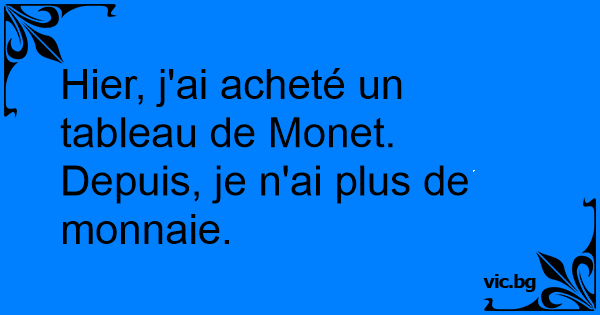 Hier, j'ai acheté un tableau de Monet. Depuis, je n'ai plus de monnaie.