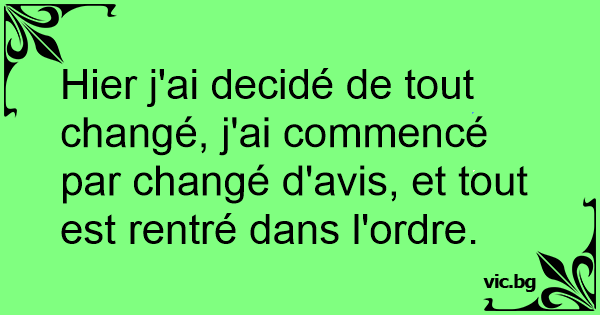 Hier j'ai decidé de tout changé, j'ai commencé par changé d'avis, et tout est rentré dans l'ordre.