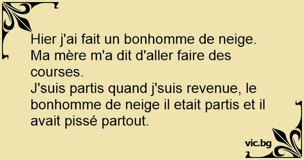 J'suis partis quand j'suis revenue, le bonhomme de neige il etait partis et il avait pissé partout.