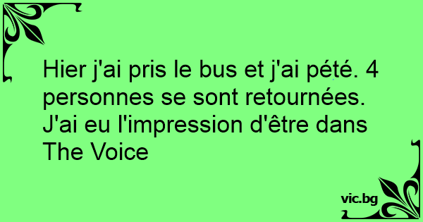 Hier j'ai pris le bus et j'ai pété. 4 personnes se sont retournées.