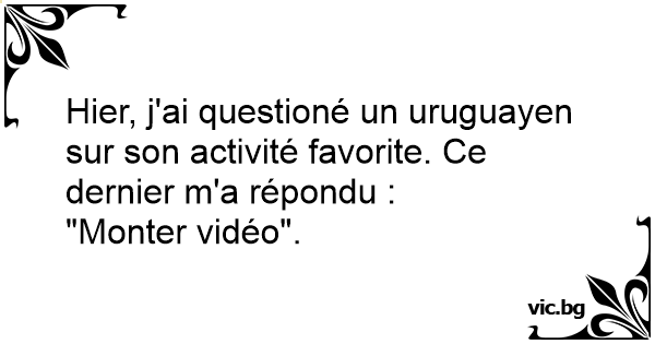 Hier, j'ai questioné un uruguayen sur son activité favorite. Ce dernier m'a répondu :