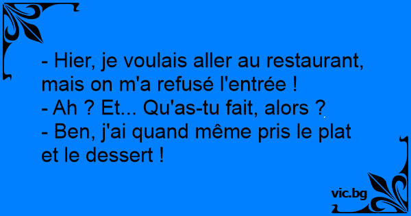 - Hier, je voulais aller au restaurant, mais on m'a refusé l'entrée !