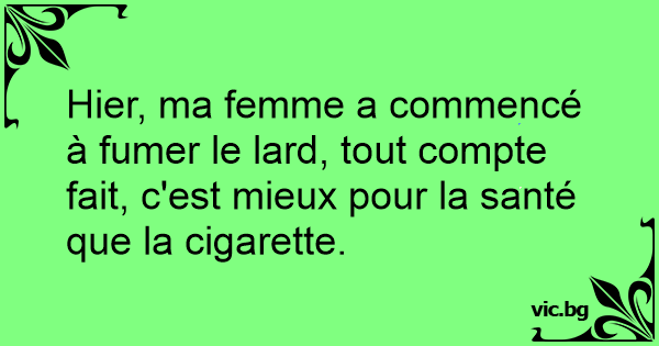 Hier, ma femme a commencé à fumer le lard, tout compte fait, c'est mieux pour la santé que la cigarette.