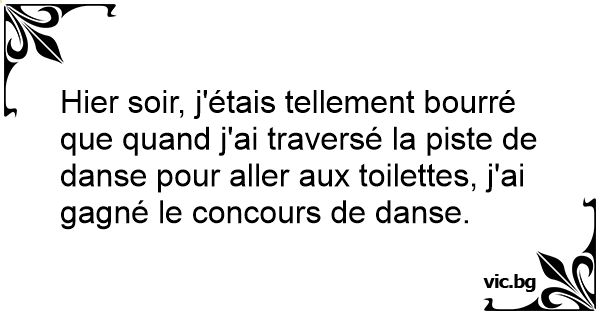 Hier soir, j'étais tellement bourré que quand j'ai traversé la piste de danse pour aller aux toilettes, j'ai gagné le concours de danse.