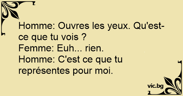 Homme: Ouvres les yeux. Qu'est-ce que tu vois ?