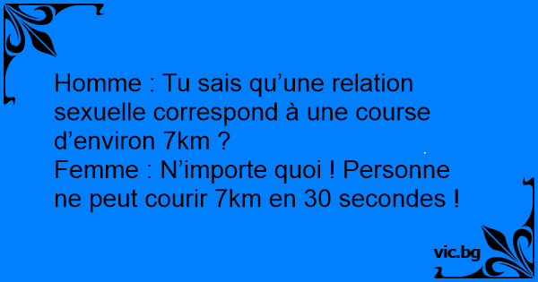 Homme : Tu sais qu’une relation sexuelle correspond à une course d’environ 7km ?