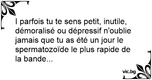 I parfois tu te sens petit, inutile, démoralisé ou dépressif n'oublie jamais que tu as été un jour le spermatozoïde le plus rapide de la bande...