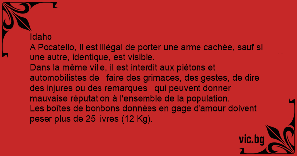 A Pocatello, il est illégal de porter une arme cachée, sauf si une autre, identique, est visible.