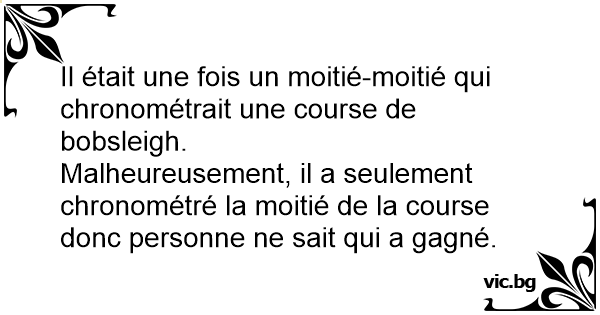 Il était une fois un moitié-moitié qui chronométrait une course de bobsleigh.