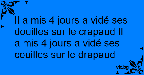 Il a mis 4 jours a vidé ses douilles sur le crapaud Il a mis 4 jours a vidé ses couilles sur le drapaud