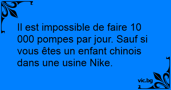Il est impossible de faire 10 000 pompes par jour. Sauf si vous êtes un enfant chinois dans une usine Nike.