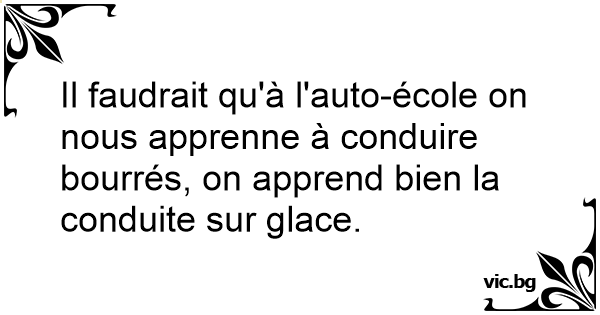 Il faudrait qu'à l'auto-école on nous apprenne à conduire bourrés, on apprend bien la conduite sur glace.