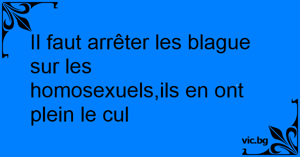 Il faut arrêter les blague sur les homosexuels,ils en ont plein le cul