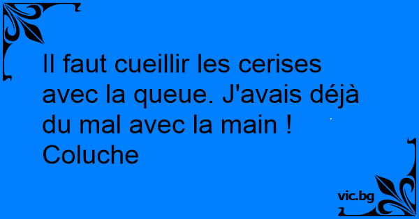 Il faut cueillir les cerises avec la queue. J'avais déjà du mal avec la main !