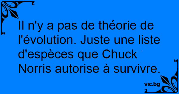 Il n'y a pas de théorie de l'évolution. Juste une liste d'espèces que Chuck Norris autorise à survivre.