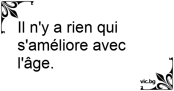 Il n'y a rien qui s'améliore avec l'âge.