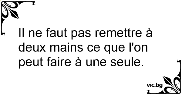 Il ne faut pas remettre à deux mains ce que l'on peut faire à une seule.
