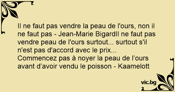 Il ne faut pas vendre la peau de l'ours, non il ne faut pas - Jean-Marie BigardIl ne faut pas vendre peau de l'ours surtout... surtout s'il n'est pas d'accord avec le prix...