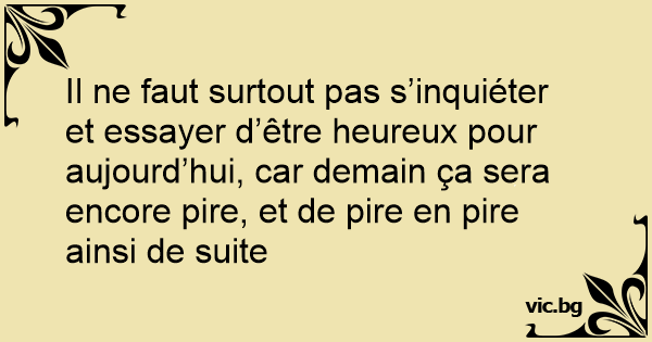 Il ne faut surtout pas s’inquiéter et essayer d’être heureux pour aujourd’hui, car demain ça sera encore pire, et de pire en pire ainsi de suite