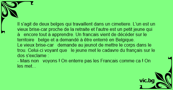 - Mais nan ! Tu sais, on enterre toujours les Français ventre contre terre parce qu'il n'y aurait jamais assez de terre pour remplir leur grande gueule !