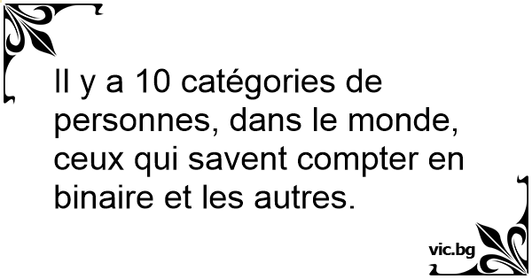 Il y a 10 catégories de personnes, dans le monde, ceux qui savent compter en binaire et les autres.