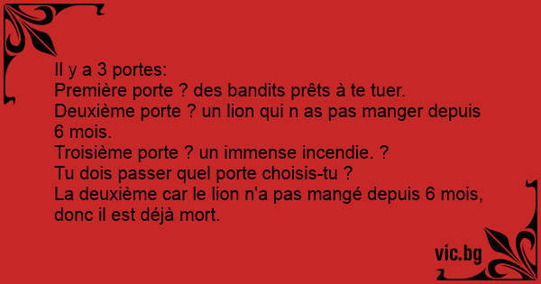 Deuxième porte ? un lion qui n as pas manger depuis 6 mois.