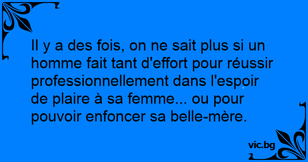 Il y a des fois, on ne sait plus si un homme fait tant d'effort pour réussir professionnellement dans l'espoir de plaire à sa femme... ou pour pouvoir enfoncer sa belle-mère.