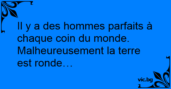 Il y a des hommes parfaits à chaque coin du monde.Malheureusement la terre est ronde… 0 0 0 Blagues sur les hommes