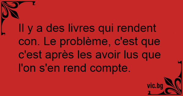 Il y a des livres qui rendent соn. Le problème, c'est que c'est après les avoir lus que l'on s'en rend compte.