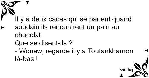 Il y a deux cacas qui se parlent quand soudain ils rencontrent un pain au chocolat.