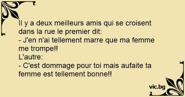 - J'en n'ai tellement marre que ma femme me trompe!!